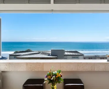 The master bedroom has a Split-King bed and an en-suite bathroom, TV with freeview, built-in wardrobe, bedside tables and lamps. This bedroom leads onto the deck and enjoys relaxing views over the beach. The other 2 bedrooms are equipped with a Queen bed in one and a Split King in the other - which can be configured as a king or two king-singles.