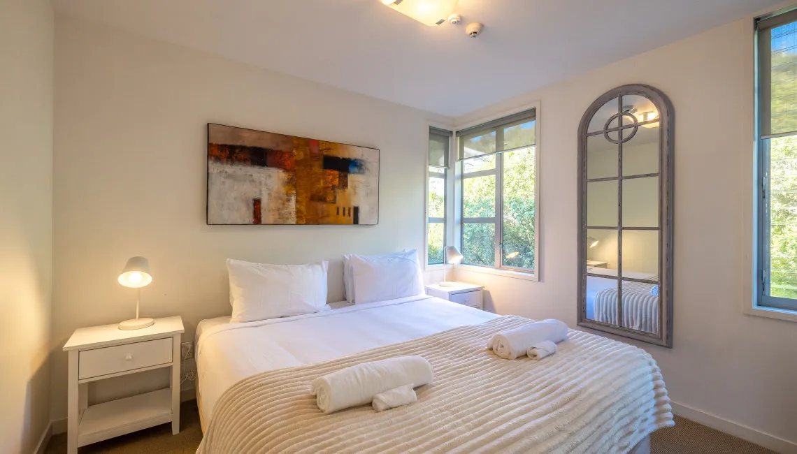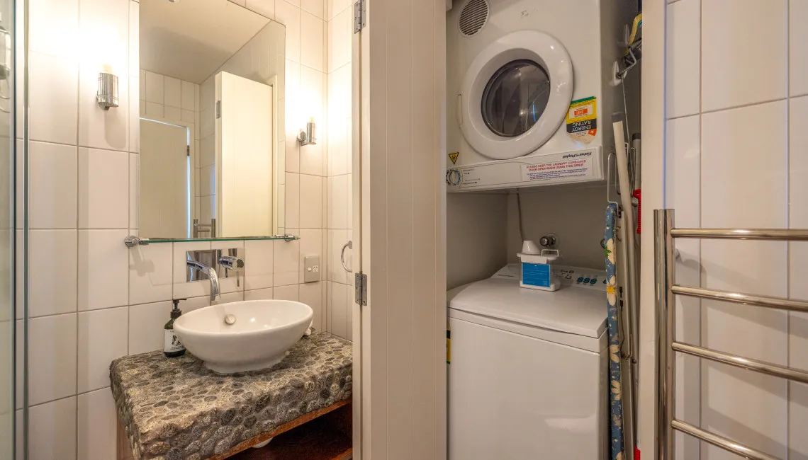 A communal BBQ, lawn area and outdoor shower are all located downstairs for guests to enjoy, and there is a dedicated parking space for one vehicle on site.