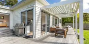 Large bi-fold doors lead from the living area onto the sun-washed deck, complete with outdoor furniture, Spa Pool and BBQ.