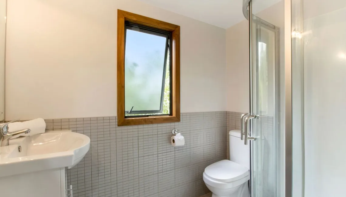 There is one full bathroom in the main house and the sleep-out has its own small living room, microwave, fridge and a separate bedroom & separate bathroom.