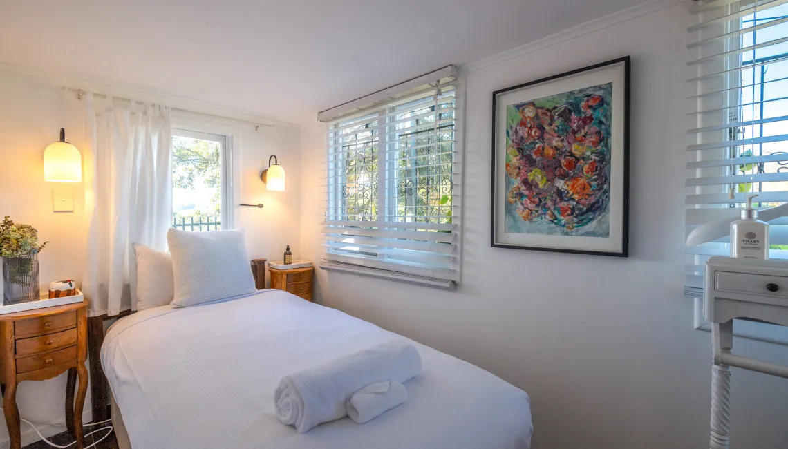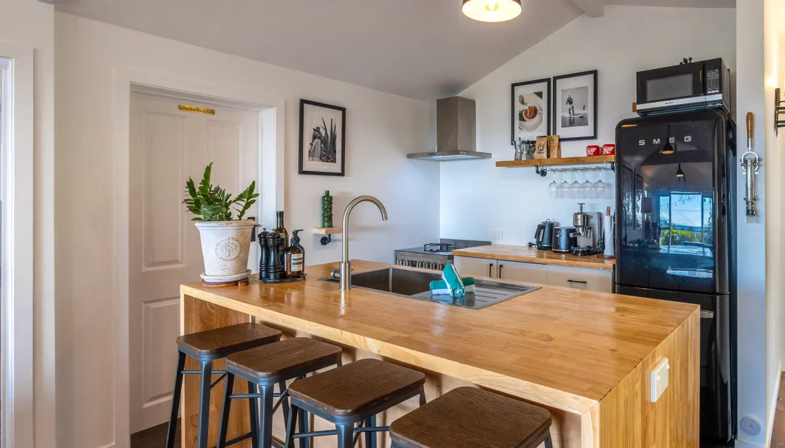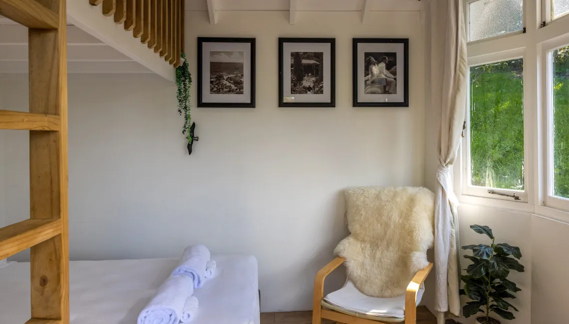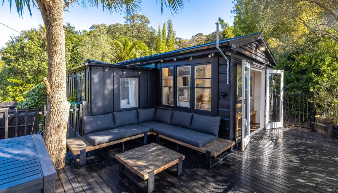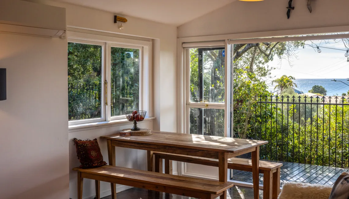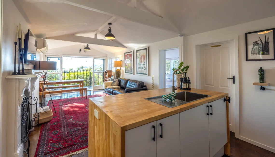 This original Waiheke bach oozes character, with native timber floors, vintage windows, and traditional joinery throughout. While it holds onto its soul, the cottage has been thoroughly updated to include modern conveniences such as high-speed WiFi, Airconditioning/Heat Pump, Smart TV, and a fully equipped kitchen with electric hob, oven, microwave, fridge/freezer, and Nespresso machine.