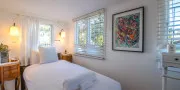 La Casa Al Mare sleeps up to five guests across three bedrooms: a peaceful master room with a double bed, a single room in the main house, and a separate sleepout with a double bed – perfect for teens, friends or extra family members.