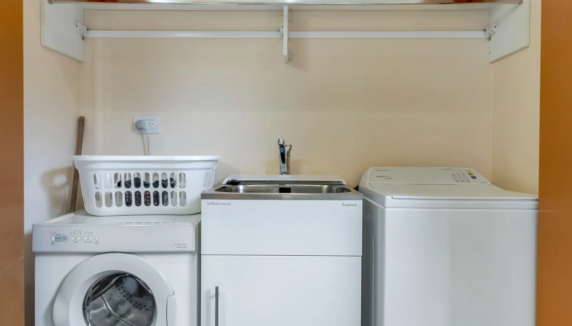 There is a second bathroom and full laundry just off the open plan living area for guests to utilize, as well as an outdoor shower to rinse off after an adventure filled fun day on the beach.