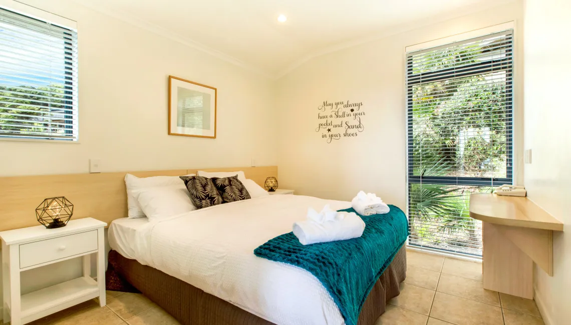 Villa Rosa is the perfect holiday accommodation if you are seeking quality accommodation for up to 4 guests. This Villa is in located in middle of the Resort complex and in a handy position to the restaurant and bar. Its elevated position offers wonderful views over Palm Beach and beyond. The bus stop is only 100 meters from the drive, and 800 meters from the pristine white sand of Palm Beach.