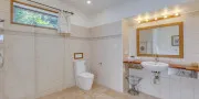 The lounge is comfortably appointed and equipped with Sky TV and DVD. The master bedroom which is also on this level has a king bed and a large en-suite bathroom. This bedroom enjoys relaxing views over the bay.