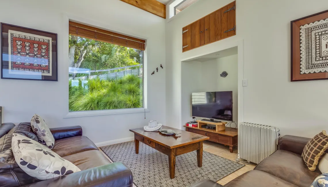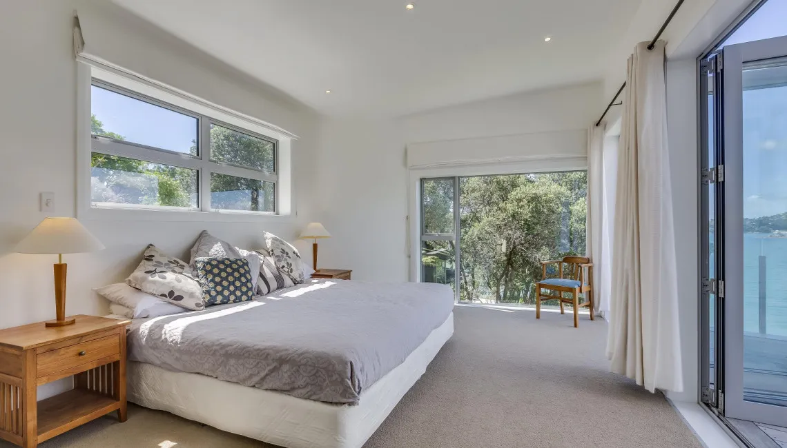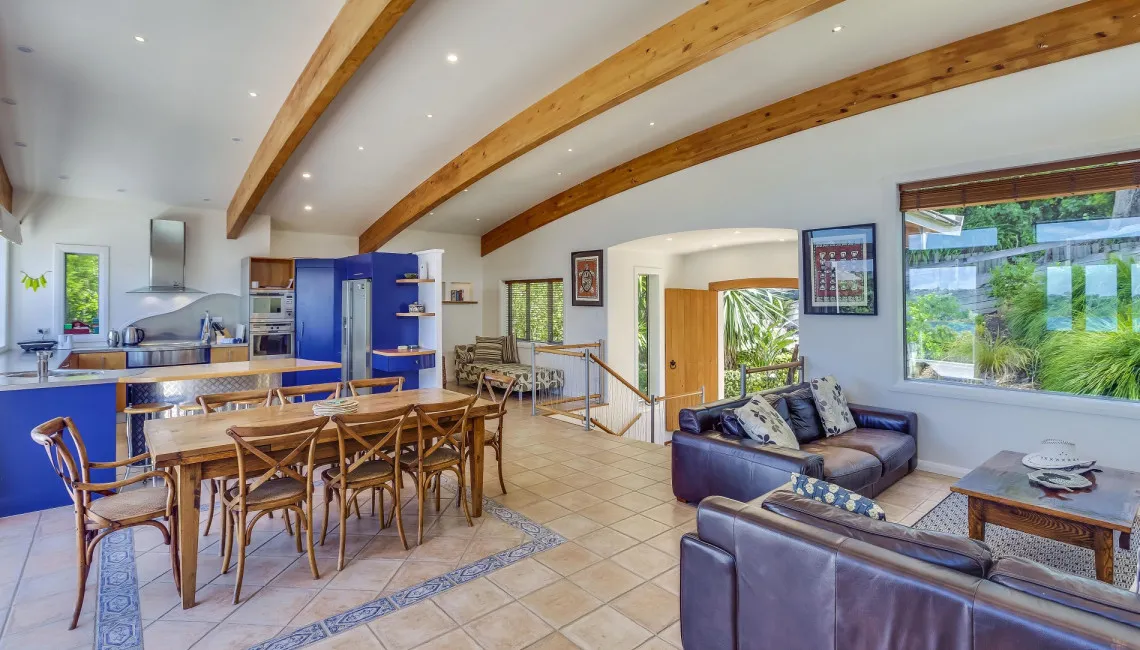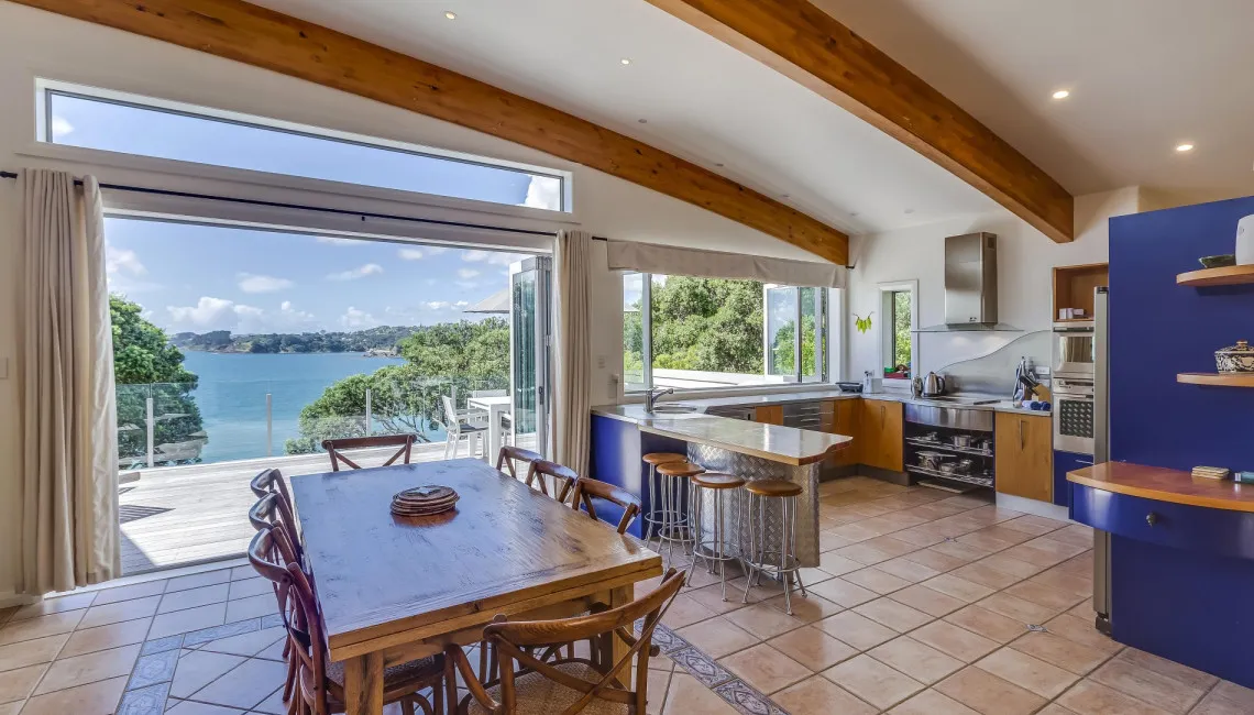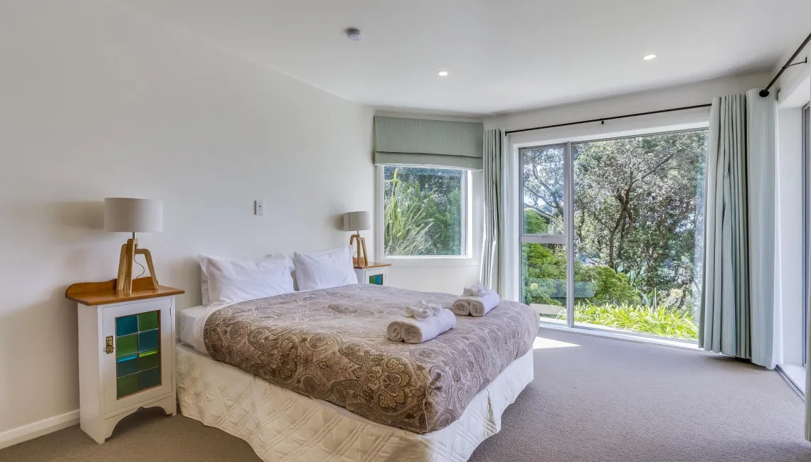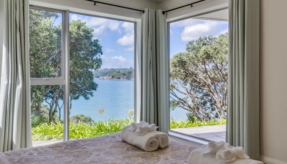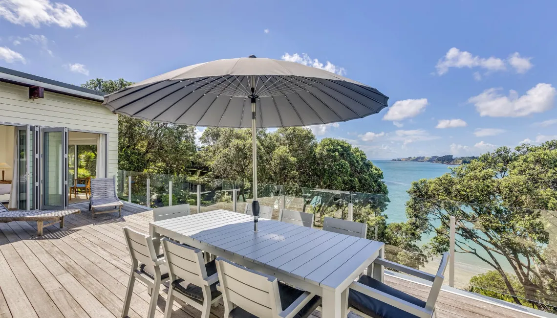A short private path meanders from the front of the house down to the pristine white sands of Oneroa Beach. This premium Waiheke home is also just 400 meters from Oneroa Village, home to many of the island’s most popular bars, restaurants, cafes and shops. If convenience and a beach at the foot of your garden are what you’re after, look no further. Talk about location, location, location. This island accommodation’s got it all!