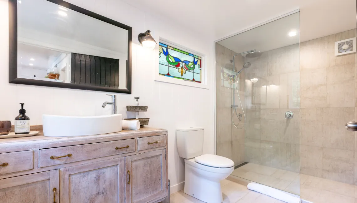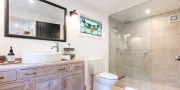 Downstairs you will also find the family bathroom, a newly renovated and luxuriously appointed bathroom with large shower, toilet and plenty of space to get changed.