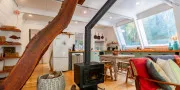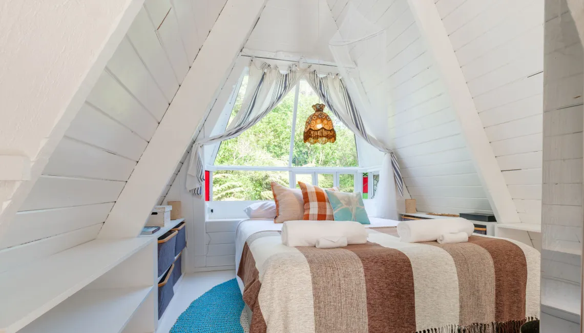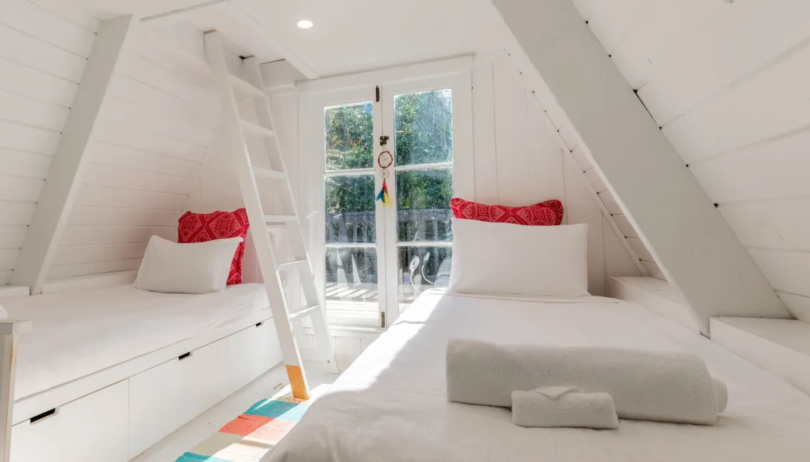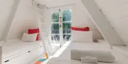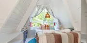Please note that due to the nature of the A-Frame building, the staircase to the master bedroom is extremely steep and is used like a ladder. It is not recommended for anybody with mobility issues or for very young children.
