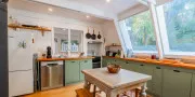 Downstairs is the main living area, with open plan kitchen diner. The kitchen is fully fitted with everything you need to cook up a storm, including full size oven and hob, dishwasher and fridge freezer. There are basic pantry items to get you started.