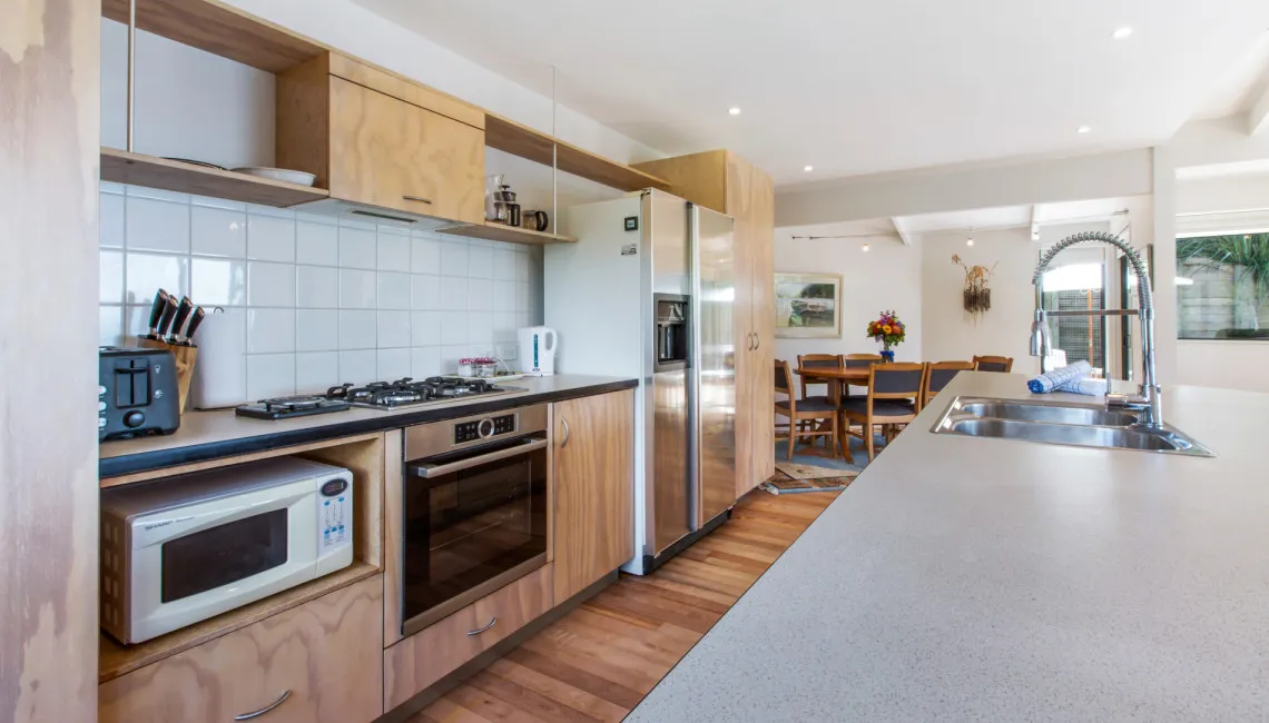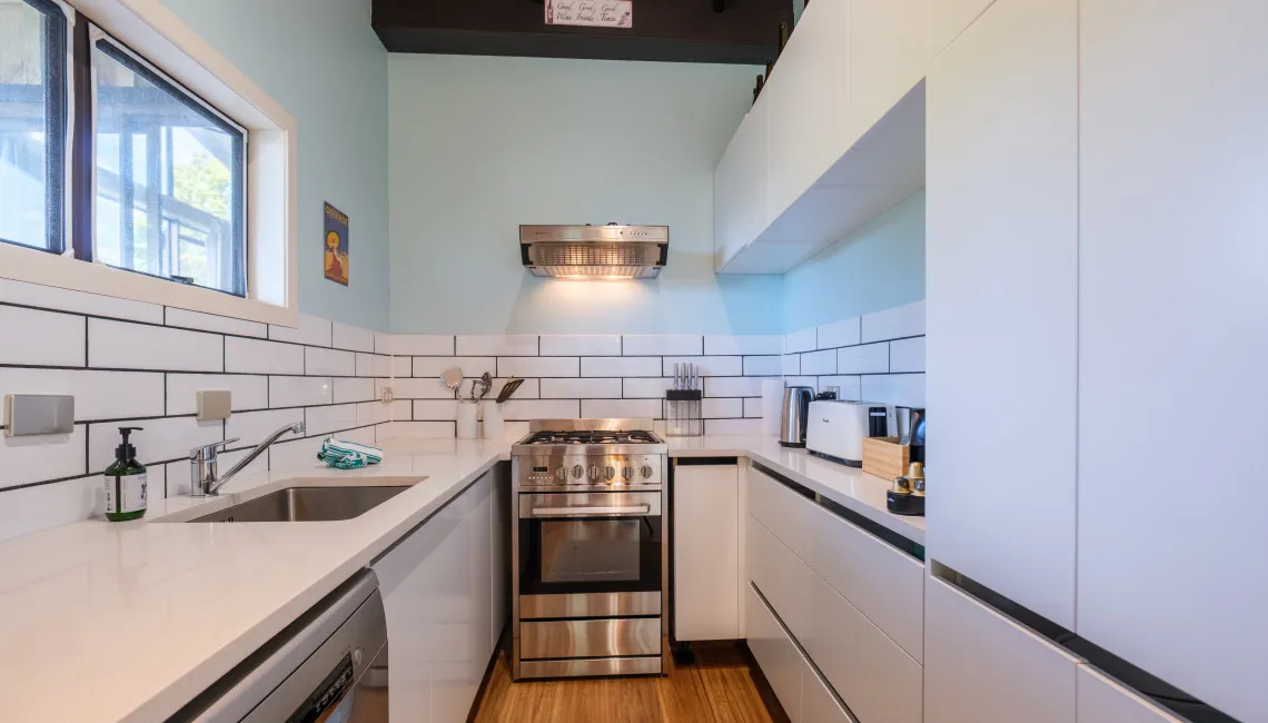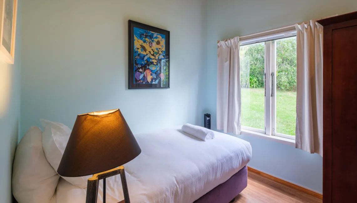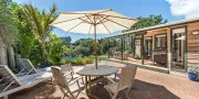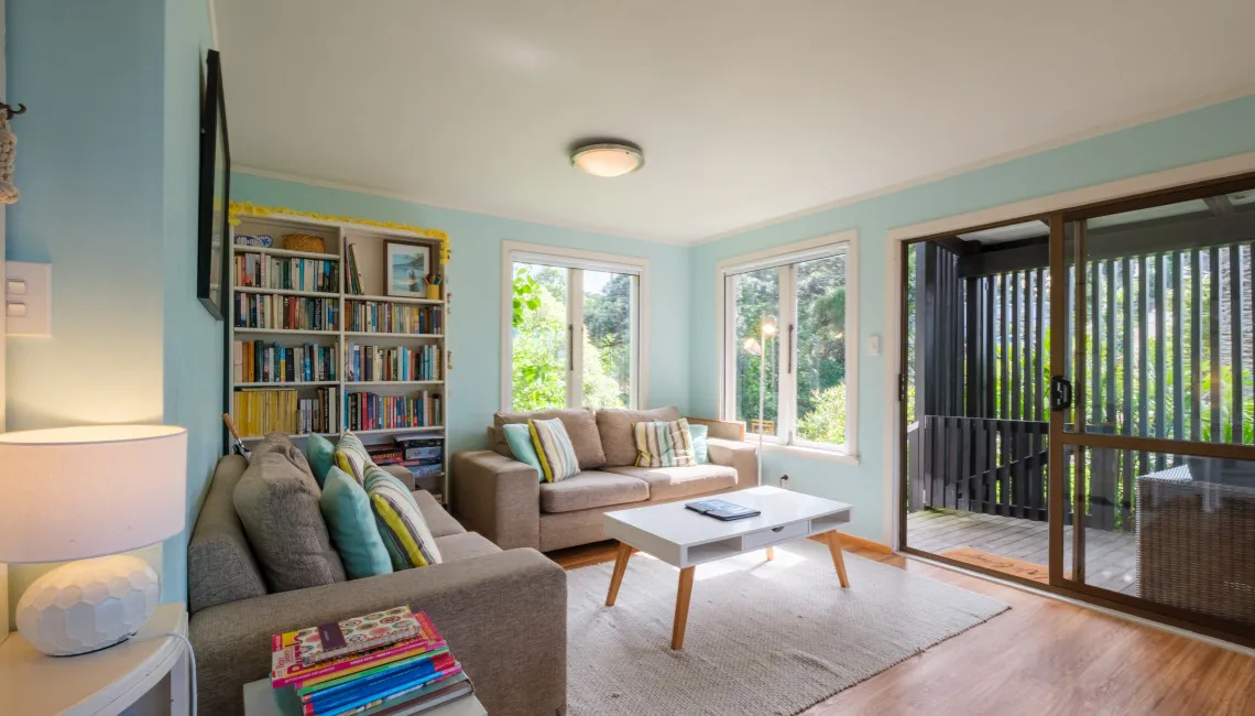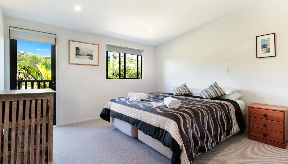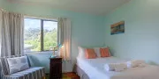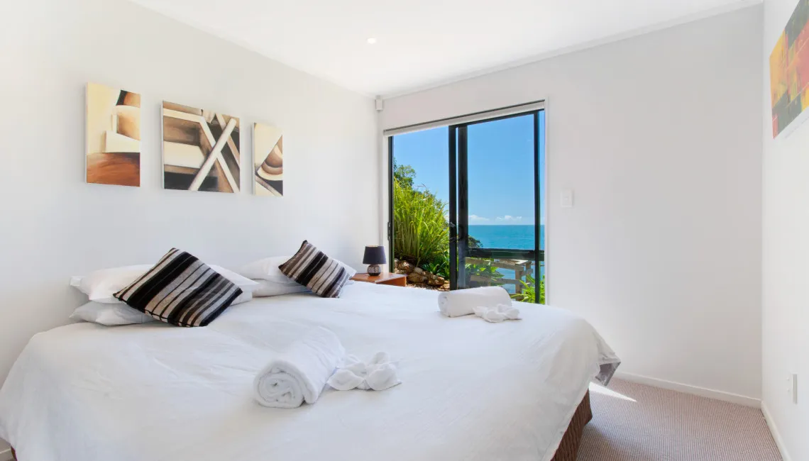 Perfectly positioned for privacy, peace and tranquility and located directly above Enclosure Bay, which is a lovely beach, perfect for little ones as it feels like a giant swimming pool and is completely safe. With caves and wonderful rock walks to be had from this location and Native Tui surrounding the property as they play and sing.
