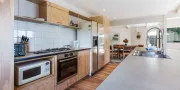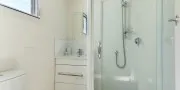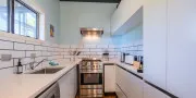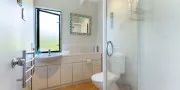 The open plan living space, located on the top floor, consists of a comfortable lounge, a cosy dining area and designer kitchen. The private sun-washed north facing deck runs off the lounge and is ideal for morning coffee during sunrise and a delicious BBQ at sunset, all while you overlook the fabulous Hauraki Gulf.