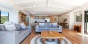 This delightful 4 bedroom 2 bathroom holiday home sits directly beachfront on Enclosure Bay. This property was built in 1920 by the family who originally owned and farmed Enclosure Bay. It has only recently been renovated to make it a modern chic laid back holiday home where we have deliberately kept that yesteryear Retro feel. Drop Anchor is perfectly situated being directly across the road from the beautiful Enclosure Bay beach (only 40 paces away), one of Waiheke’s best kept secrets. A beach that at high tide becomes like a giant enclosed swimming pool.