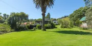 The sunny wrap around deck has BBQ and outdoor furniture. A big flat lawn runs off the front, and there is a further lawn to the rear, this has a purpose built area for a tent.