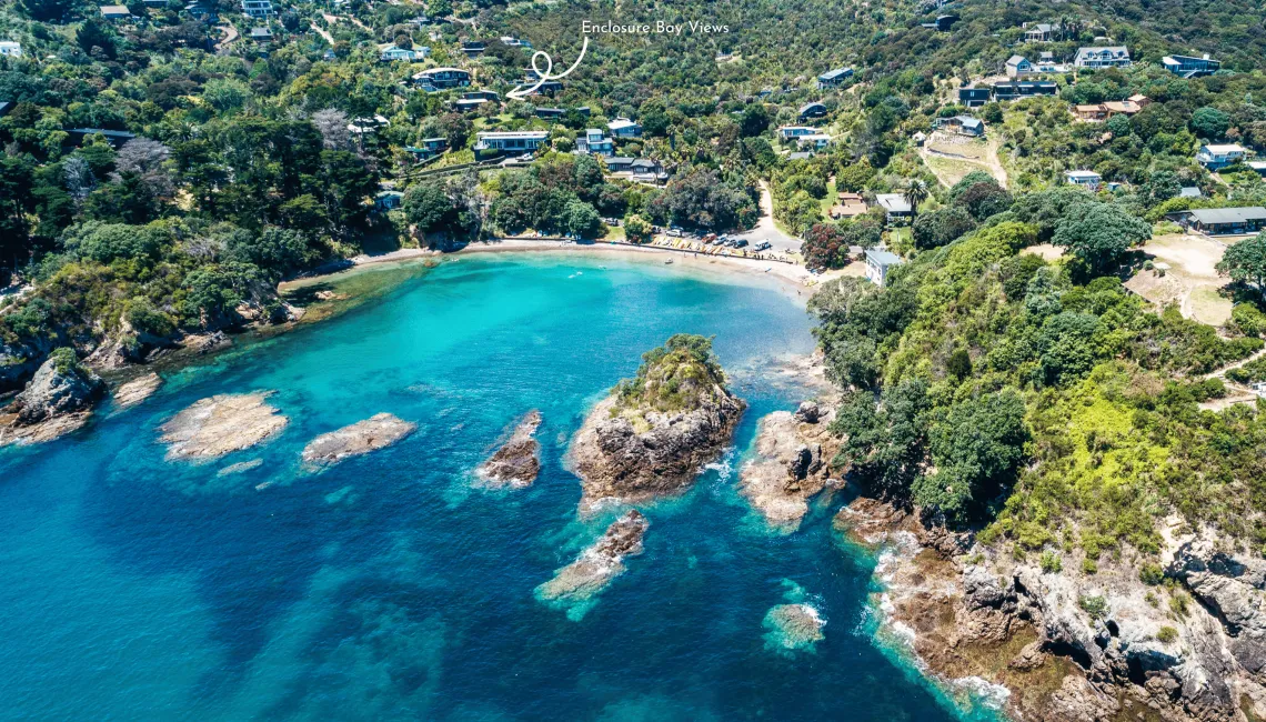 The surrounding area is a wonderful place to explore, with Enclosure Bay just a couple of minutes walk away – this is the best swimming spot on Waiheke and wonderful place to practice snorkelling, kayaking or paddle boarding. Just a few minutes away by car and you can visit Palm Beach, Oneroa and Onetangi, with a plethora of bars, restaurants, cafes and boutique shops to explore.