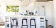 Enclosure Bay Views is a modern 2 bedroom family home with 2 bathrooms located just a stones throw from the stunning swimming beach of Enclosure Bay.