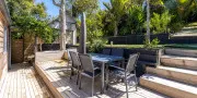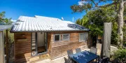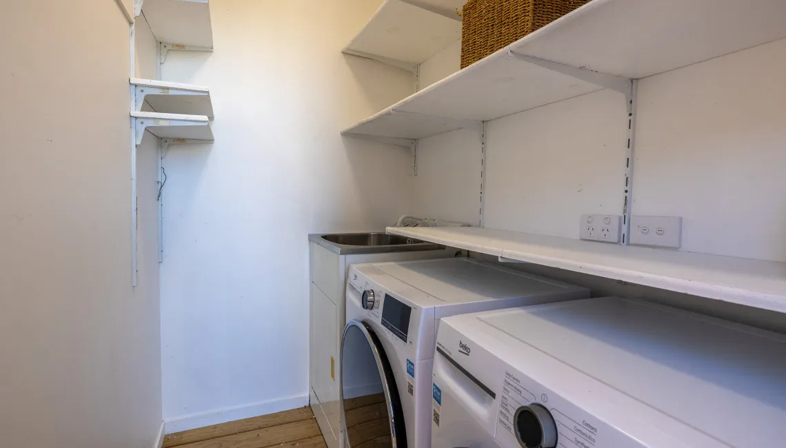 The front deck offers a sunny spot to enjoy the ocean view, while the sheltered courtyard at the rear provides a private outdoor dining space and gas BBQ — perfect for relaxed evenings. High-speed internet, a smart TV, add modern convenience and there is off-street parking for two cars