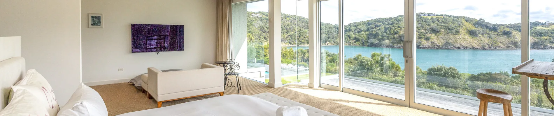 Located just minutes from Oneroa’s restaurants, shops and beaches, Kotare Estate offers privacy, convenience and style in one impressive package. There’s ample off-street parking, and optional in-house services including private chefs, massage and car hire can be arranged on request.