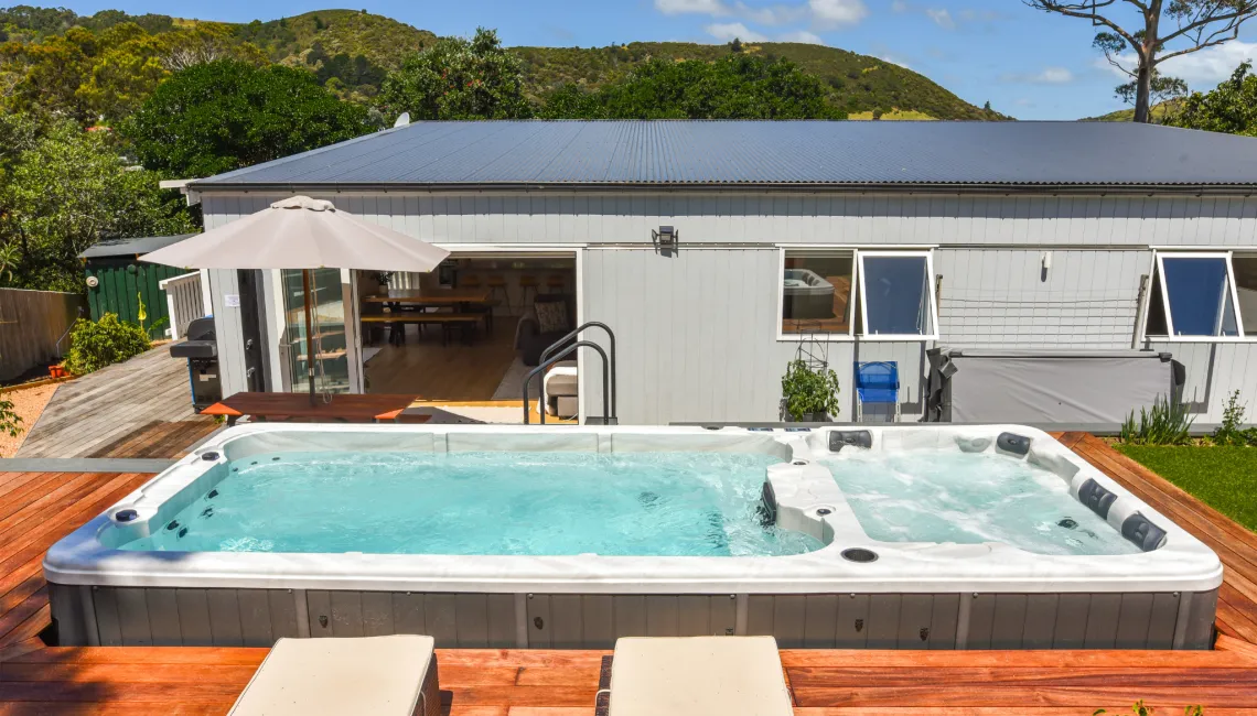 Tucked into a quiet, sunny spot, this property captures all-day sun and a wonderful sense of privacy. Whether you’re lounging on the deck, enjoying the spa, or relaxing with a book in the garden, it’s easy to settle into holiday mode. Beaches, vineyards, and cafes are all within easy reach, making this a fantastic base to explore the best of Waiheke.
