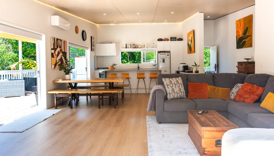 This stylish and contemporary home is the perfect place to relax, reconnect, and make the most of your time on Waiheke Island. Designed with comfort and convenience in mind, it’s an ideal retreat for families or small groups looking for a peaceful yet well-equipped base.