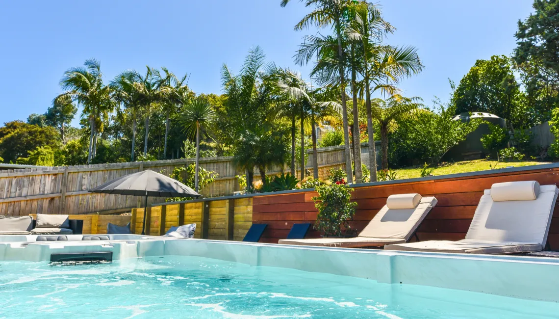 Outside, a large private garden offers room to roam, while the centrepiece is the massive heated swim spa and adjoining hot spa pool — perfect for unwinding in any season.