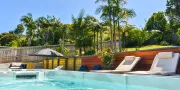 You’re just a short drive from the ferry terminal and key amenities including shops, cafes, and supermarkets. Public transport routes are nearby, and on-site parking makes it easy if you’re bringing a vehicle. Whether you want to explore the island by car, bus, or e-bike, getting around is simple — and you’ll love coming home to this serene, spa-side retreat at the end of the day.