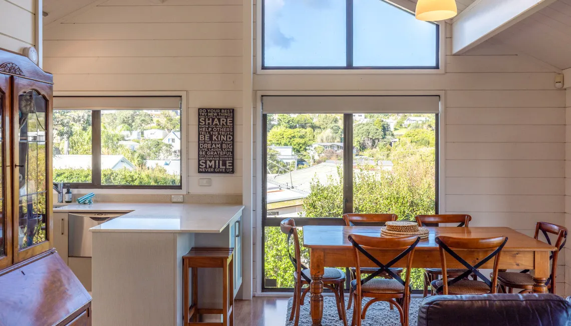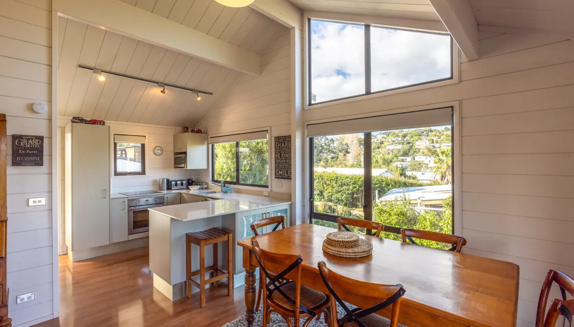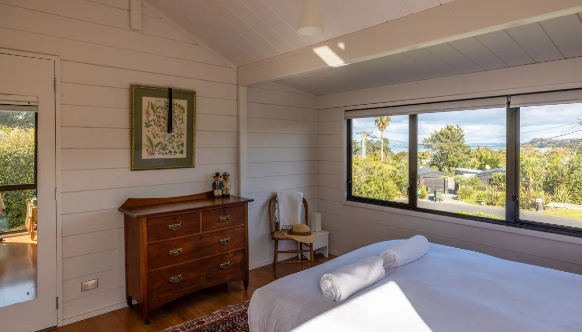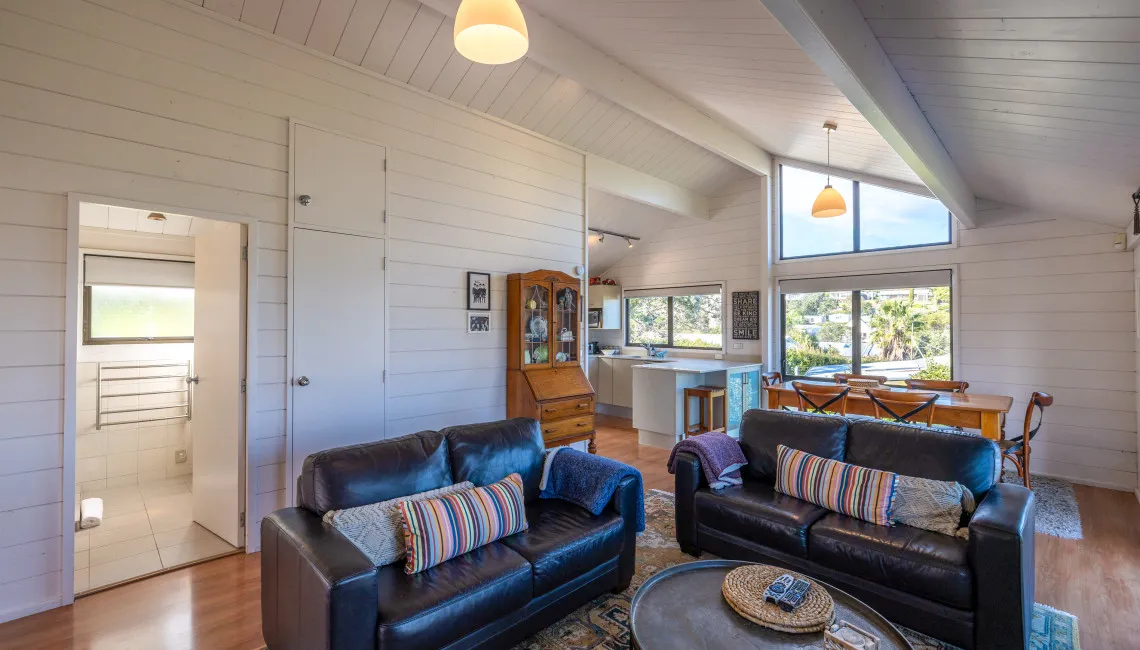 Tucked away in a peaceful spot just moments from the heart of Oneroa village, Matai Cottage is a charming two-bedroom retreat that offers sweeping ocean views and relaxed, contemporary comfort. Perfect for couples, families, or small groups, the cottage blends the feel of a classic Waiheke getaway with modern conveniences.