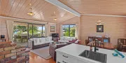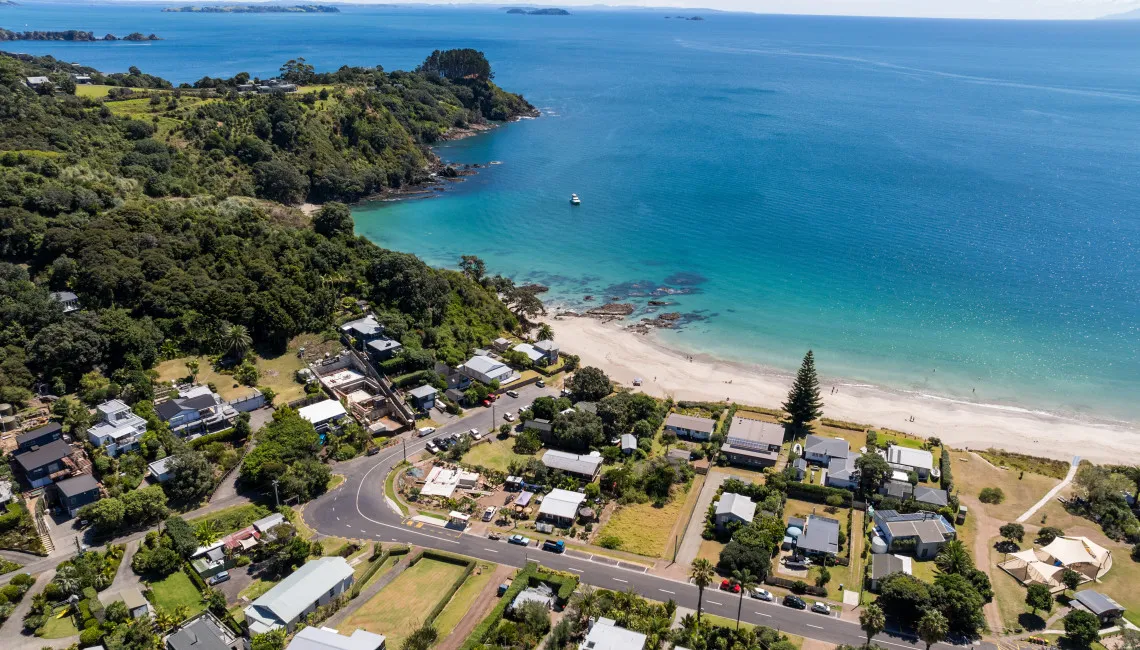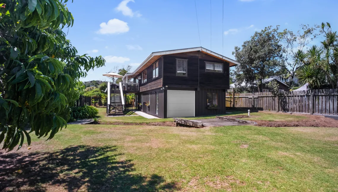 The house is set on a large flat section right next to the beach – a real rarity on Waiheke. The flat lawn is the perfect place to play games and there is enough room to park your boat and vehicles.