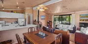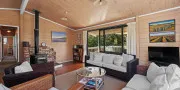 The living area of the house is all on the upper level, with a large deck complete with BBQ area and seating for up to 6 diners. With views of the ocean and the sound of the waves from the ocean just 50 metres away this is a relaxing place to while away the hours.