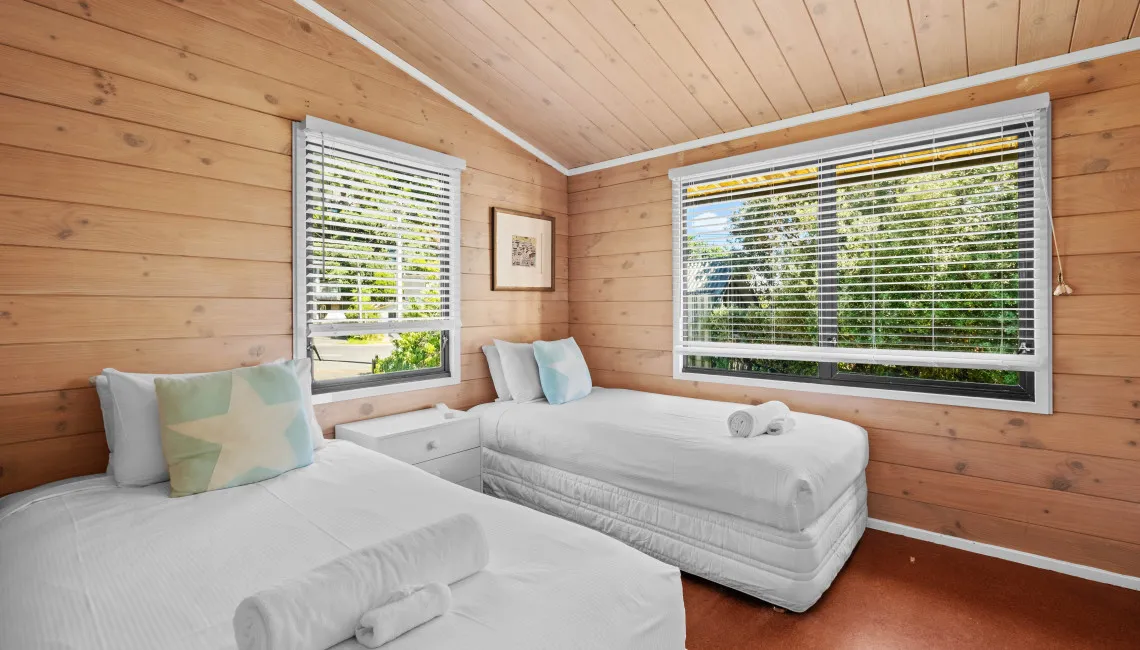 The bedrooms are all comfortable sizes, the master has a queen sized bed, bedroom two has a double and bedroom three has two king-singles which can be joined to form a king bed if required. All mattresses are new, pillow top mattresses and are supremely comfortable. The beds are made up with luxury linens and large fluffy bath towels are provided for every guest.