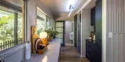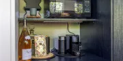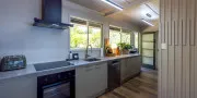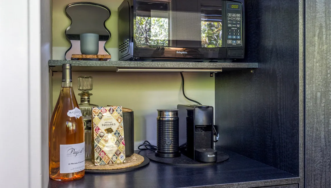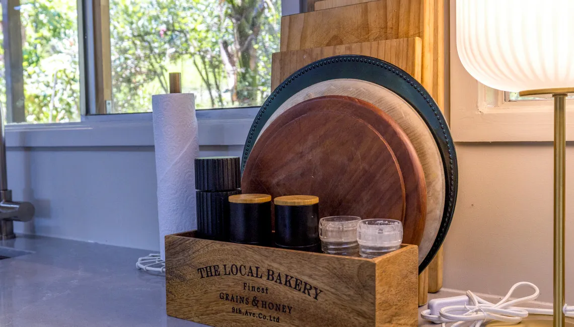 The full kitchen is well equipped and stylish, making it easy to enjoy long breakfasts or shared meals after a day on the beach. A Nespresso machine is provided, along with a welcome selection of premium teas and coffees. For entertaining, the house also features a wet bar with ice machine, well positioned for relaxed evenings on the deck. A full laundry is available, making longer stays simple and practical.