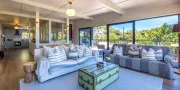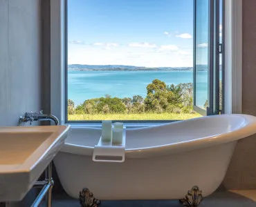 From the lawn, you can step straight onto the sand for a morning swim or a walk along the beach. Cafés, vineyards, and Onetangi village are all close by, but the setting feels private and unspoiled.