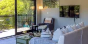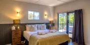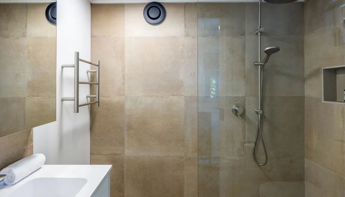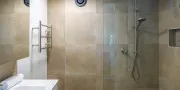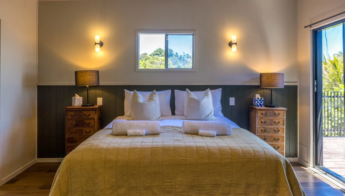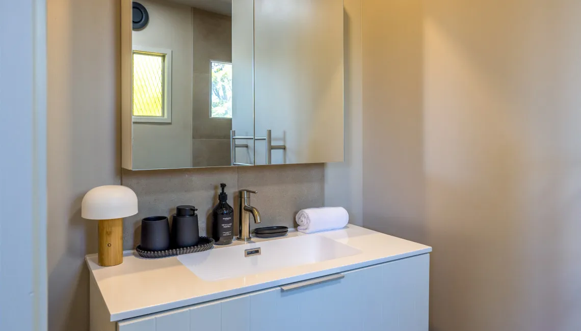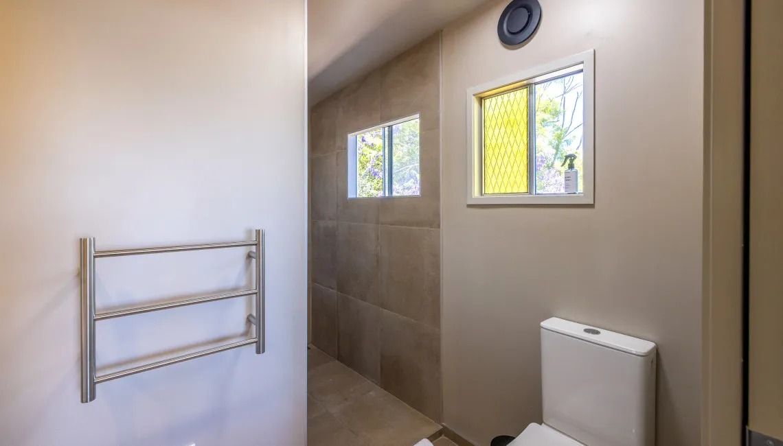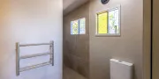 Both bedrooms are fitted with king beds and quality linen, offering calm and comfortable spaces to unwind. The two bathrooms are modern and spacious, with large tiled showers and simple, contemporary fittings that feel practical and well considered.