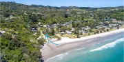 Moana Beach House is a recently renovated two bedroom, two bathroom beach house set directly on the sand at Onetangi Beach. With a flat lawn that opens straight onto the beach, this is genuine absolute beachfront in one of the most desirable locations on Waiheke Island.