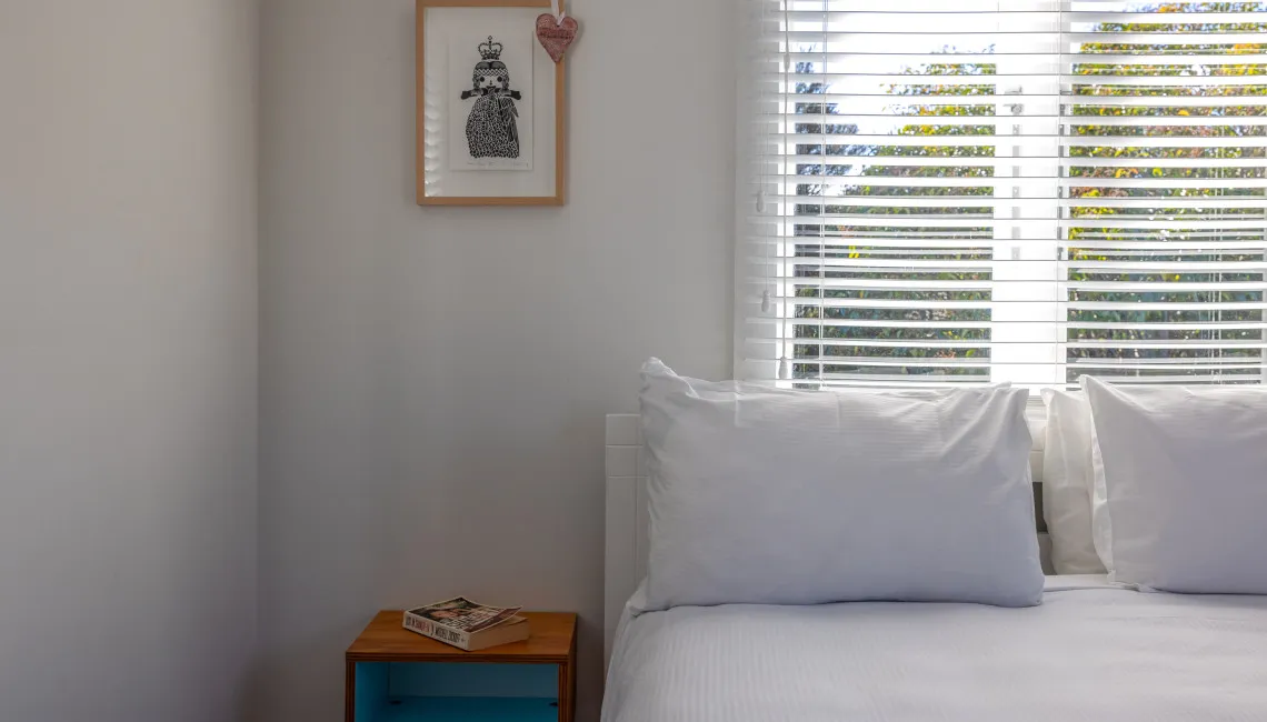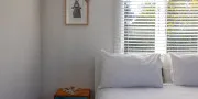 The main house is configured with 2 bedrooms plus a good sized family bathroom. One bedroom features a split king, which can be configured as 2 singles or a super-king bed. The other bedroom has a queen bed. Both are appointed with comfortable mattresses and high quality cotton linens. The third bedroom is the sleepout located away from the main house at the bottom of the garden.