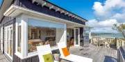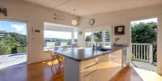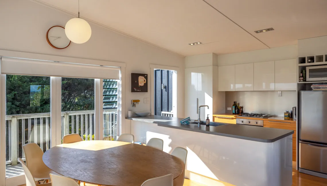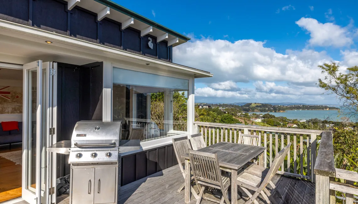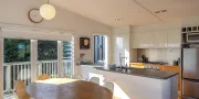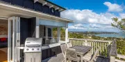 Next to the kitchen is a large family dining table with seating for up to 8 guests. There is a further outdoor dining table for Al Fresco dining and a large gas BBQ for cooking up a storm on the deck. The deck is fully fenced and can be secured to keep young children and pets safe.