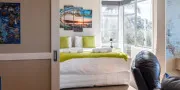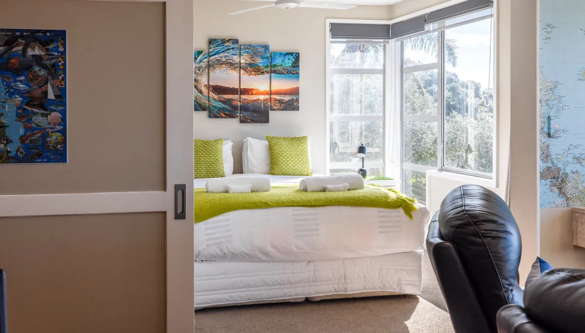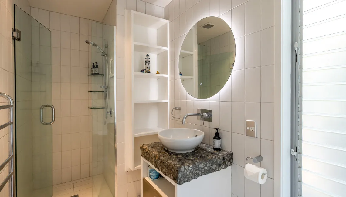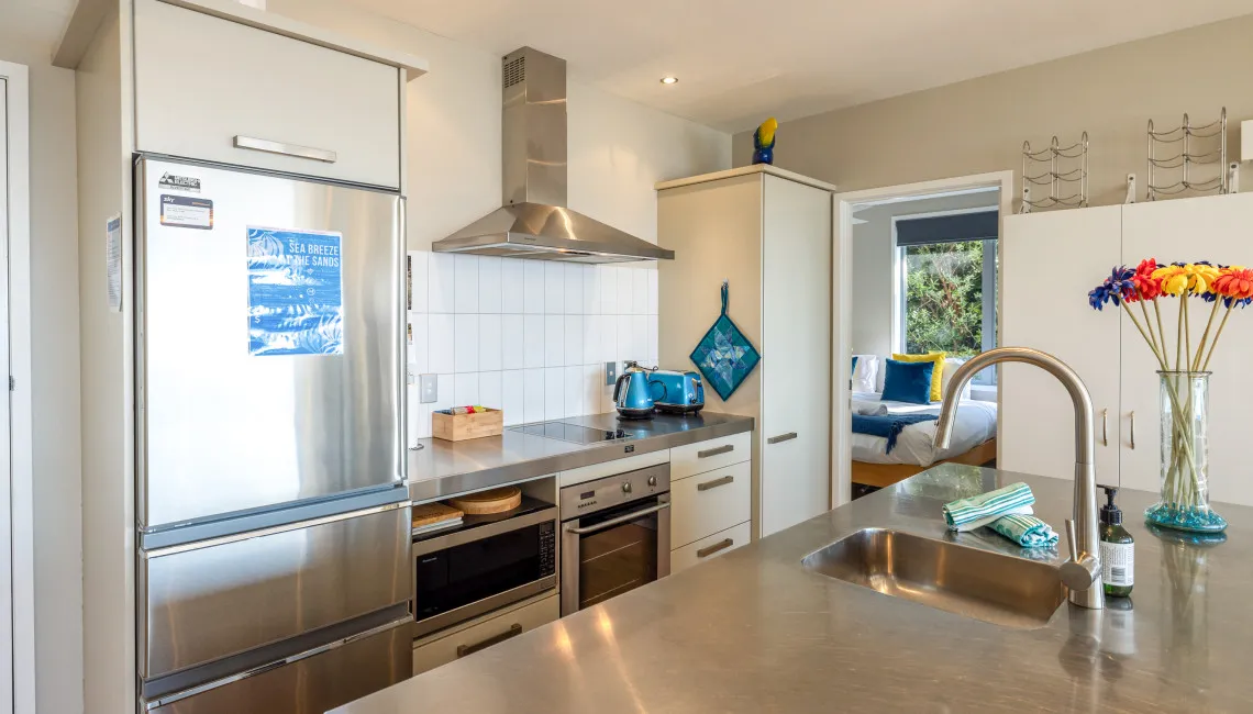 A communal BBQ, lawn area and outdoor shower are all located downstairs for guests to enjoy, and there is a dedicated parking space for one vehicle on site.