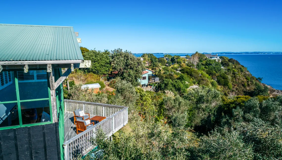 A short 200-metre stroll down a native-lined path leads to Takirau Bay, a quiet swimming beach known for its calm, clear water and easy access. From here, it’s only a few minutes’ drive to Palm Beach or the cafés and shops of Oneroa. The area feels tranquil and private, surrounded by native bush and birdsong, yet remains within easy reach of everything the island has to offer.