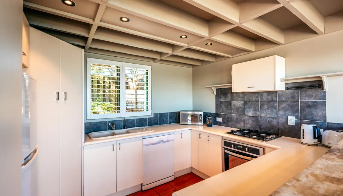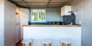 Upstairs are two comfortable bedrooms and a quiet reading area that makes a great spot for an afternoon book or a morning coffee. The main bedroom features a king bed, while the second bedroom has a split-king that can be configured as two singles. The newly renovated bathroom includes a modern shower and toilet.