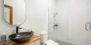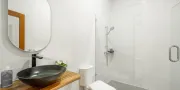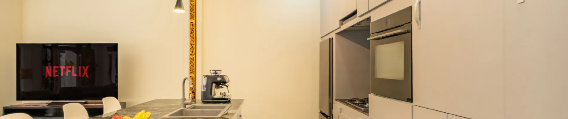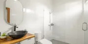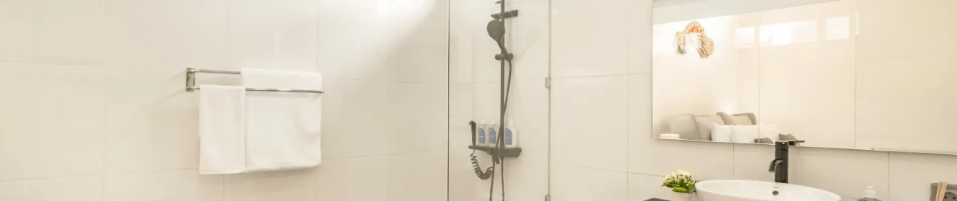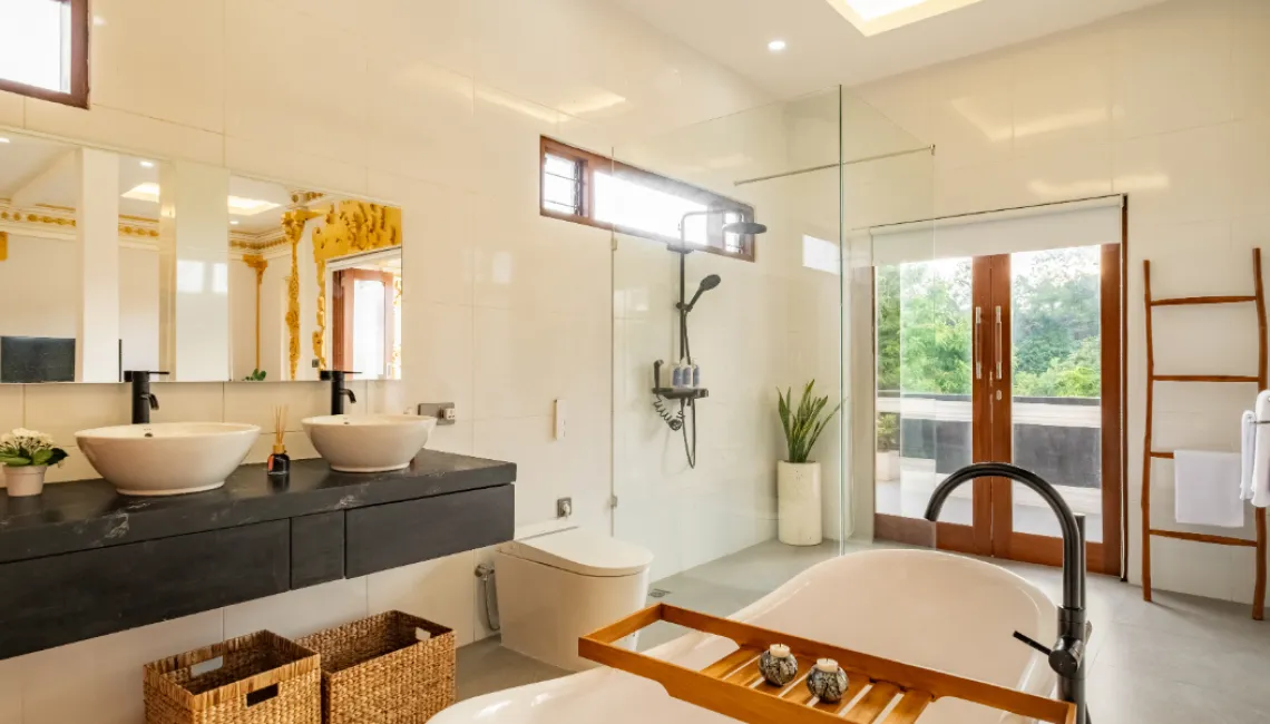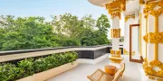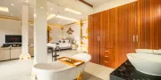 This 150sqm Grand Master Suite redefines indulgence. This private haven combines a spacious bedroom, open bathroom with a claw- foot bathtub, and a Super King designer bed, dedicated lounge for enjoying television on its smart 65inch TV or listen to your favorite music. Three sets of bifold doors open onto a large balcony adorned with lush tropical plantings and elegant outdoor furniture - an idylic space to soak in the golden glow of Balanese sunsets.