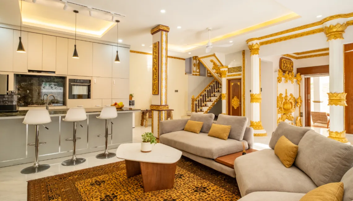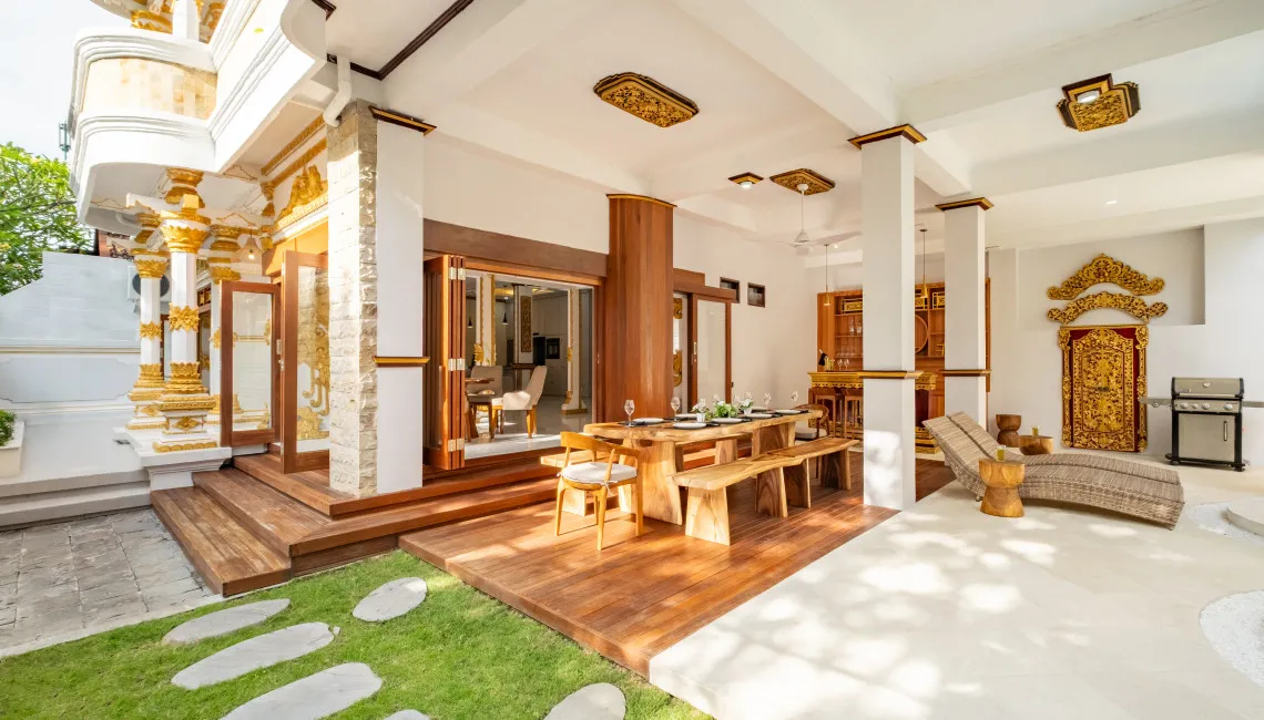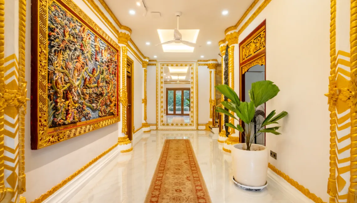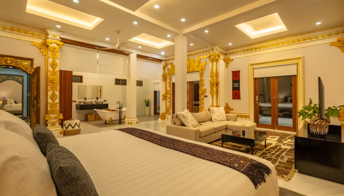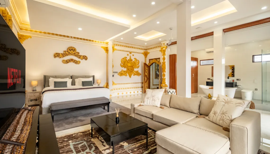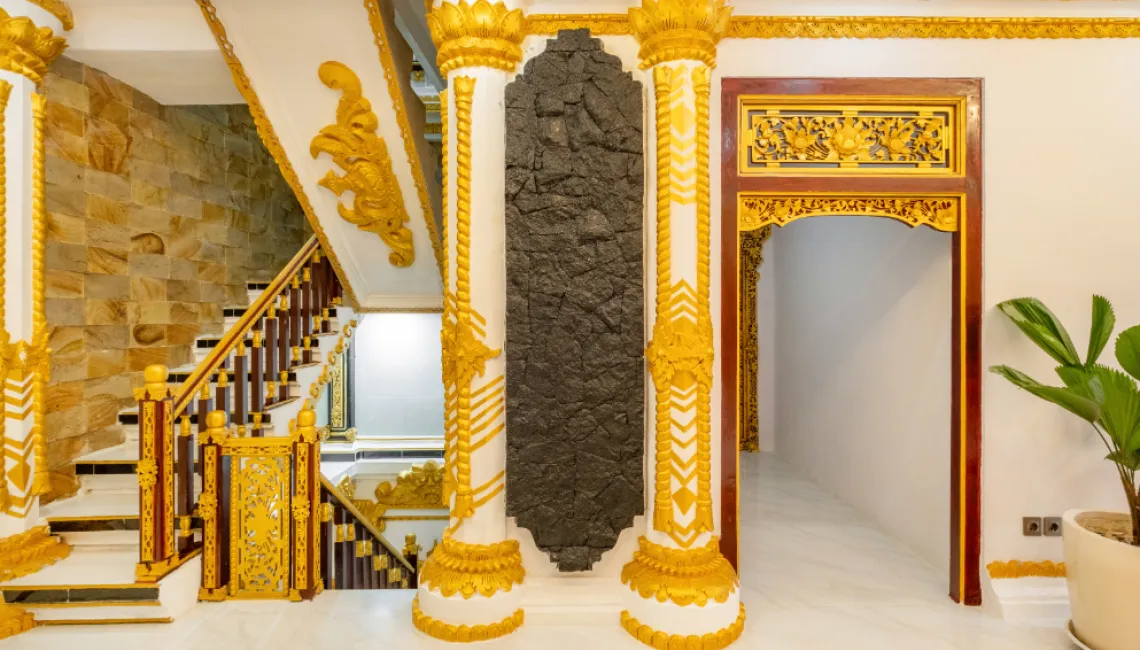 When the current owner took custodianship of the property, they sought to preserve its soul while unveiling its beauty. Every stone, carving, and curve of the original structure was carefully dismantled and lovingly restored, with intricate details faithfully reassembled in the new design. Over two years, the transformation took form — blending traditional Indonesian craftsmanship with the sophistication of modern architecture. The result is nothing short of breathtaking: a white and gold palace that glows with history, artistry, and indulgence.