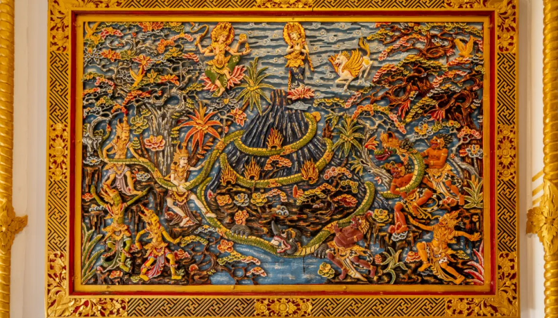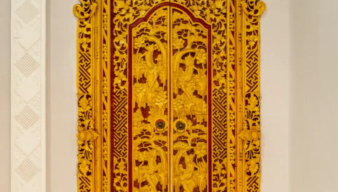 Swarna Mandapa began life as two distinct buildings: a modest village home and a revered spiritual hall once owned by a Balinese high priest. For 24 years, the priest taught traditional religion here, guiding students in the sacred art of stone carving — a deeply spiritual practice used to express and understand the teachings of Balinese religion. Day and night, for nearly a quarter of a century, the sound of chisels echoed through the halls as students shaped devotion into stone.
