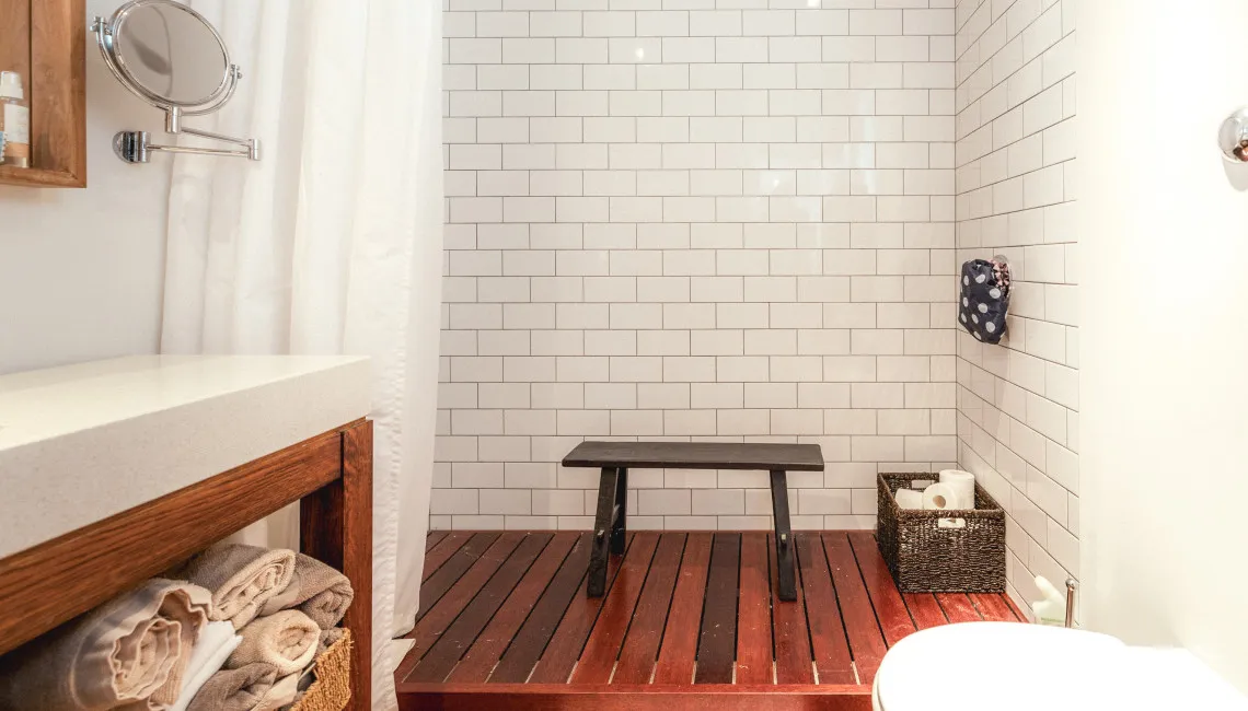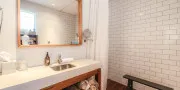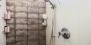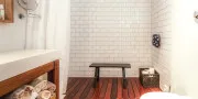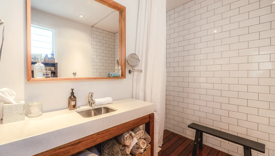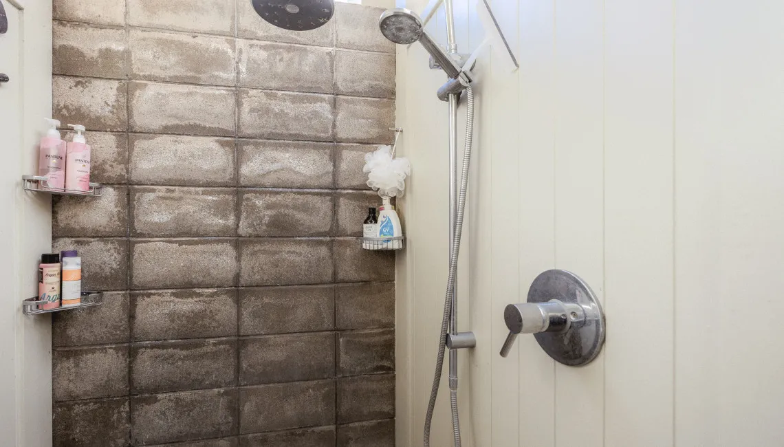 There are two bathrooms on the property, both are on the upper level. The main family bathroom is inside the house and there is also a full bathroom in the covered outdoor area next to the kitchen – this is perfect for washing off after the beach and gives an extra hot shower and toilet area when accommodating larger groups.