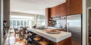 Outdoor dining areas are available at the back of the home, with seating for 12 under a large sun umbrella with an outdoor fireplace keeping you warm during cooler evenings. There is also a large indoor dining table with seating for 8 guests.