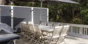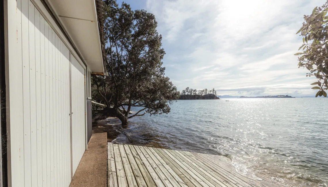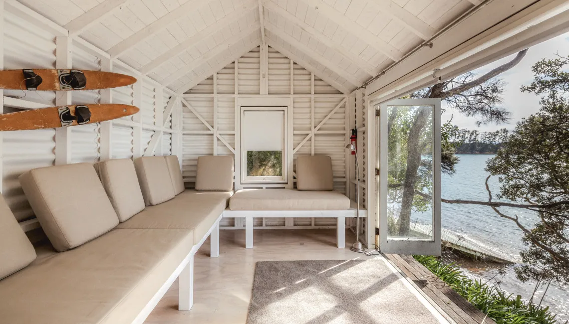 At the bottom of the section, down a private walkway you will reach the summer room, with views over the ocean - perfect for enjoying a glass of wine or reading a book. The room is breezy and shaded, perfect for keeping cool in the middle of summer. Right on the shoreline is the private boat shed, this is where the kayaks and paddle boards are stored and offers a ramp directly into the ocean.