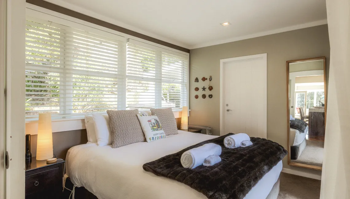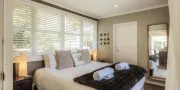 Upstairs you will also find the master bedroom and primary guest bedroom, the master has a super-king and the second room has a king-size beds, both are complete with luxury pillow-top mattresses. Downstairs are three more sleeping areas, with a king-single room leading through to the bunk room containing three more king-single beds. In an adjacent room is the final bedroom with a king size bed, giving a total of 3 x double and 4 x single beds in the main house. All sleeping areas can be accessed privately via external doors giving plenty of privacy.