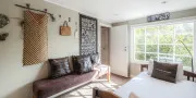 There is a spill-over sleeping area in the garden caravan, this is perfect for one additional guest, but could accommodate two at a squeeze.