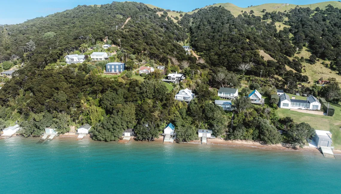 Arran Bay is off the beaten track around 25 minutes’ drive from Onetangi and requiring a 4WD vehicle in order to access the private driveway. It is one of the oldest inhabited bays on Waiheke and many of the houses are over 100 years old.