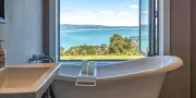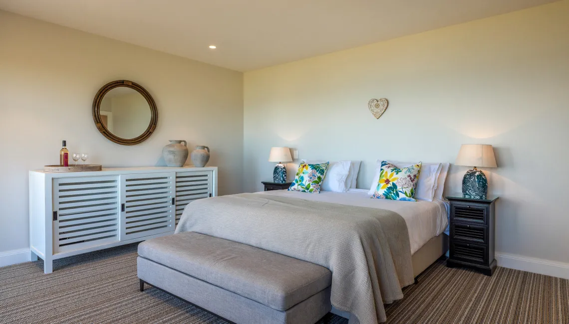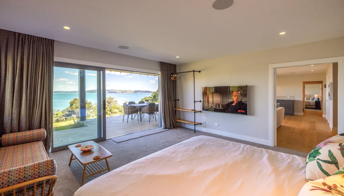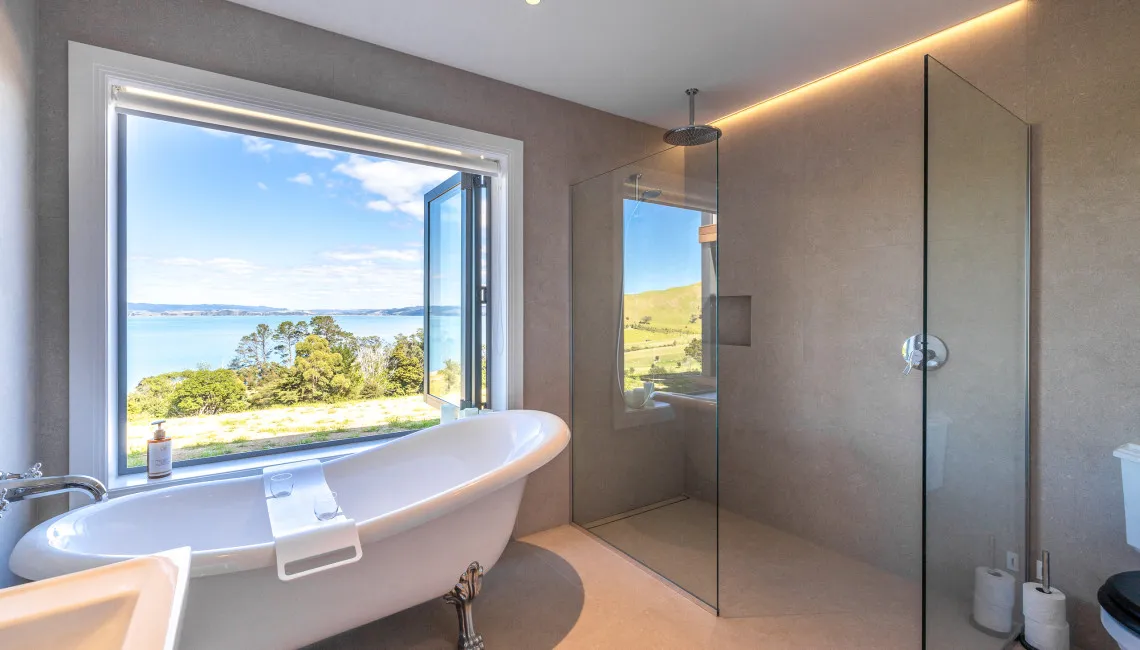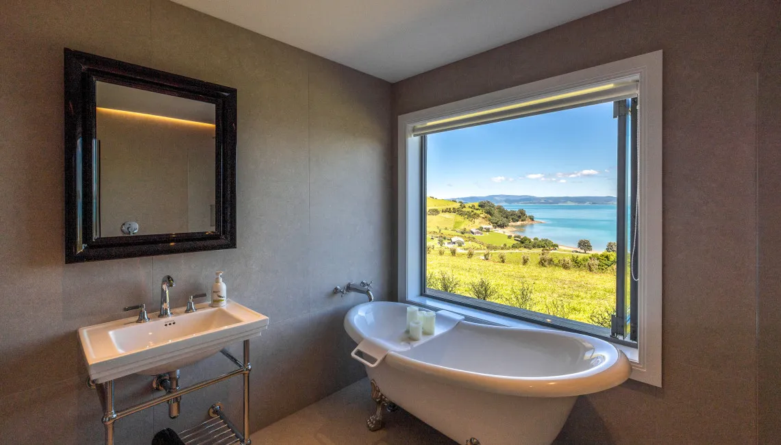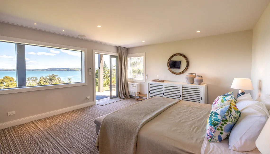 The Keep at Woodside Bay is a newly built coastal retreat designed for couples and small families wanting privacy, comfort, and a relaxed island stay. A private walkway leads directly from the property to the shoreline below, giving you easy access to the beach and calm water at Woodside Bay.