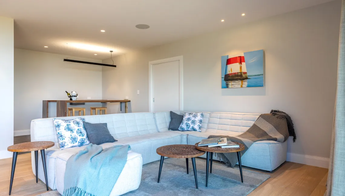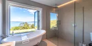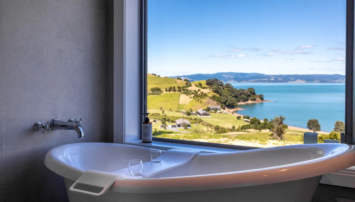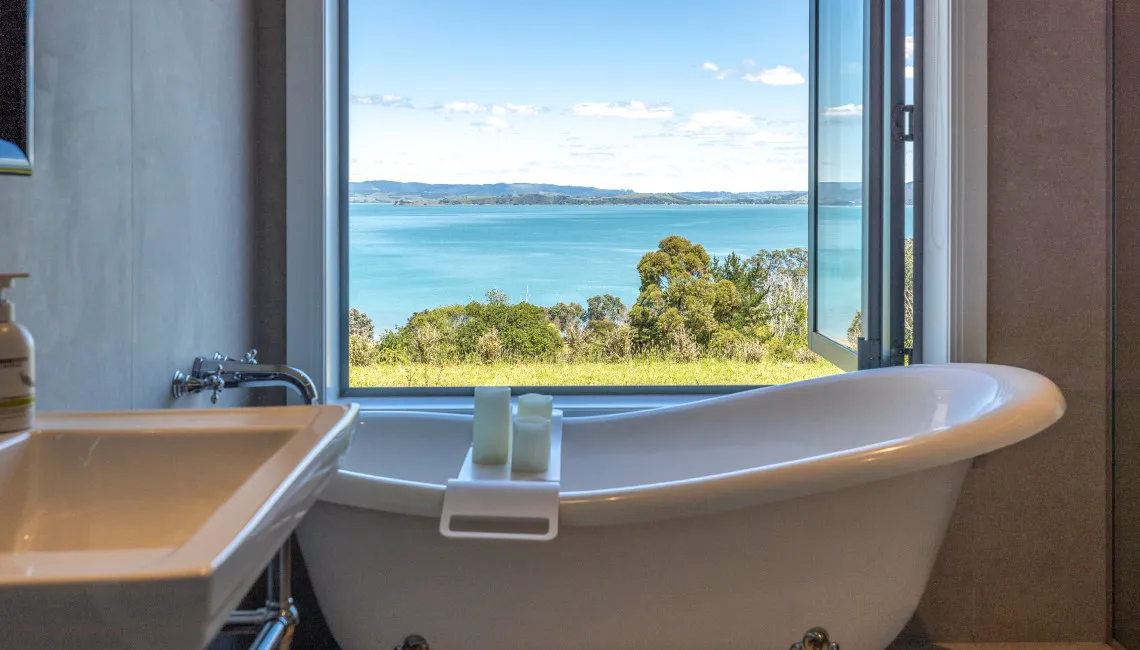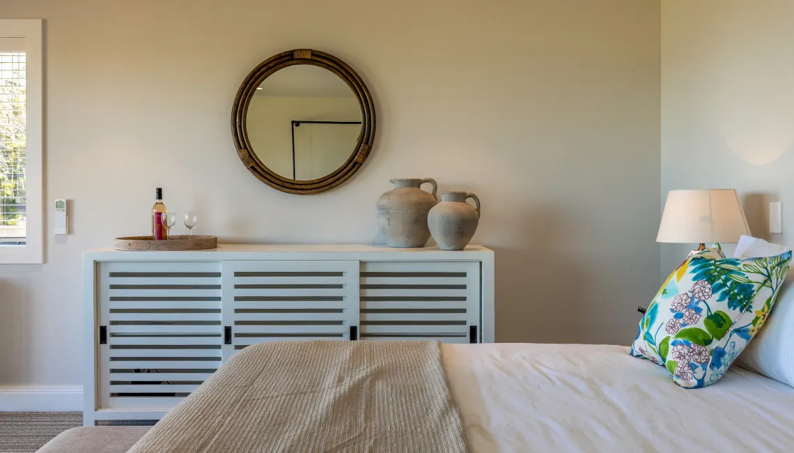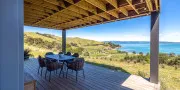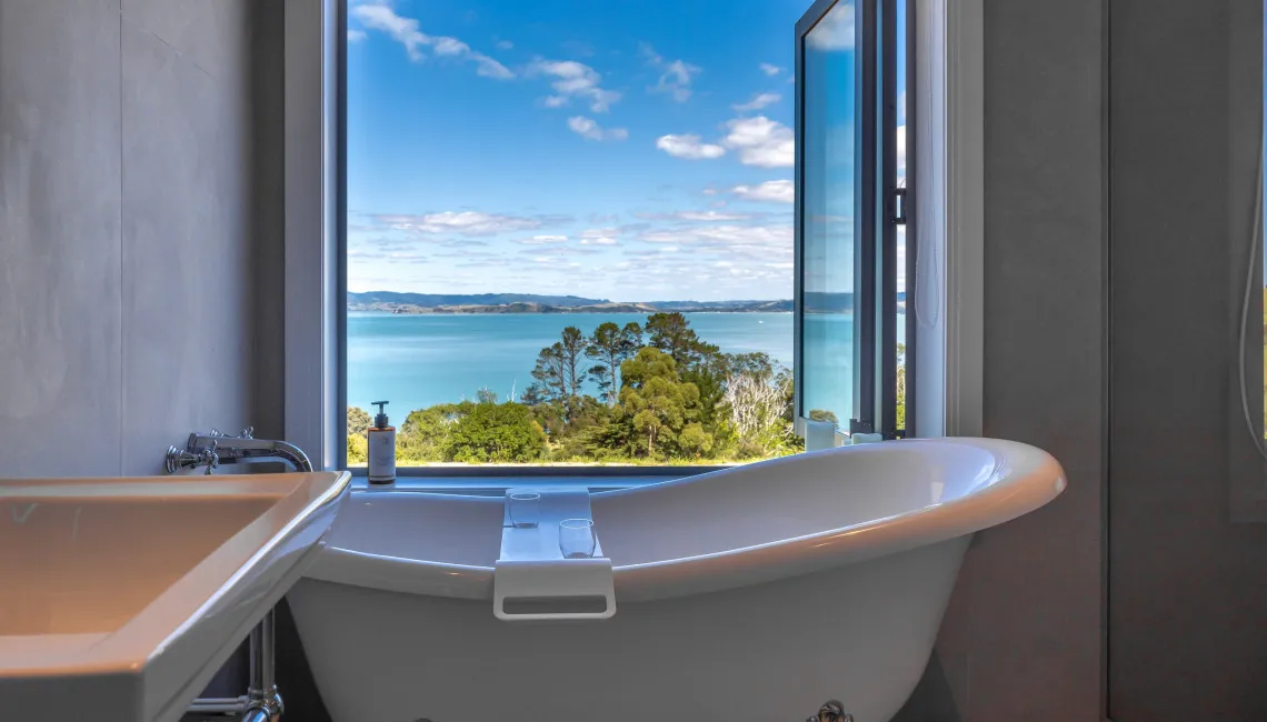 The Keep at Woodside Bay is a newly built coastal retreat designed for couples and small families wanting privacy, comfort, and a relaxed island stay. A private walkway leads directly from the property to the shoreline below, giving you easy access to the beach and calm water at Woodside Bay.