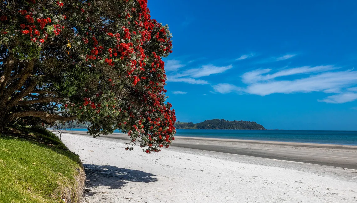 Onetangi Beach, directly across the road